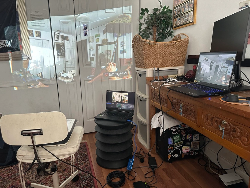 Unfortunately, the projection screen was wrinkled with wrinkles from shipping folded. I just figured it was the cost of not having a better screen, but my dad suggested we try and fix it by ironing it. I vaguely remember fucking up a projector screen with heat a few years ago when I went to Imagine Or Festival and so I decided to double check on YouTube. I found this video where ironing is NOT recommended, after perusing the comments, I learned that placing the screen in the dryer with a damp cloth works wonders for removing wrinkles. That’s when my memory fully clicked—I destroyed that last projection screen in a dryer by running it on too high a heat setting. Since I have two screens, one grey and one white, I decided to retest the technique on the lowest heat setting using my grey screen. I’ll know if this is worth doing to the white screen in about 30 minutes.