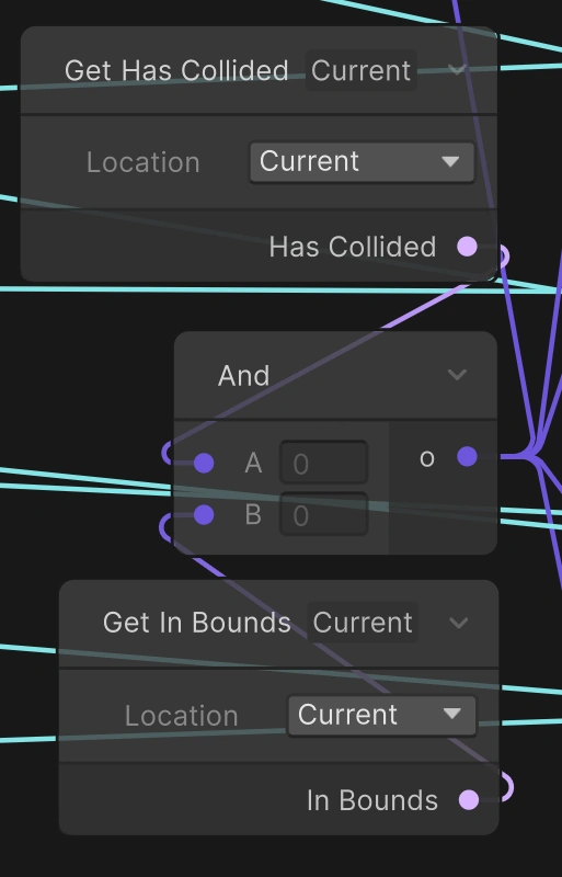 Let’s go back to the general trigger idea. When should the trigger trigger? If I wait until the sphere is completely outside the bounds, it’s probably too late, because the particles near the sphere when it disappears completely will go bezerk. I think what I should do is trigger an automatic hand-close override when the sphere crosses the grid boundary by more than 50%. That means I can simply compare the position of the sphere to the grid limits on each axis since the sphere’s center (i.e. its transform position) is 50% from its edge.