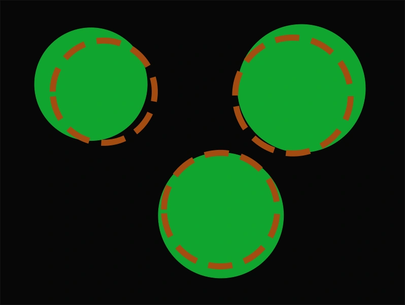 I found a pretty glaring mistake in my VFX graph logic that’s been hiding in plain sight. I was using my combined metaballs SDF as the bounce-generating collision shape in the Update Particles context. What made this an issue is that I was resizing the scale of the collision shape to be slightly smaller—my reason for doing this was that it allows the shape of the particle flow to better conform to the SDF attractor shape than when the collision surface is the same size or larger. However, the SDF attractor contains ALL metaballs in the scene; meaning that when scaled down, it scales from the origin rather than the position of the corresponding player’s sphere. This causes an offset between the SDF collision surface and SDF attractor shape, as shown below.