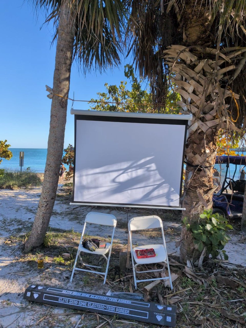 I had to make due with what I had. I pivoted my energy toward prayers for my ultra-short throw to arrive in time and asked Drew to borrow his short-throw projector for a day in case mine didn’t. Good friend that he is, Drew agreed to lend his to me, but I could tell he wasn’t thrilled about the idea. Oh well. I hopped in my car and went to Virginia Key to scope my space and begin setup.